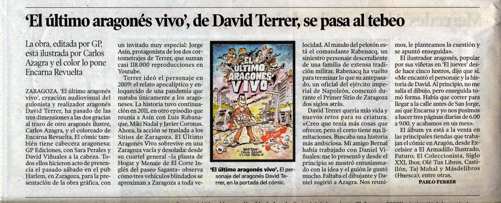 Artículo de Pablo Ferrer en Heraldo de Aragón el abril 08, 2014 Obtener enlace Facebook X Pinterest Correo electrónico Otras aplicaciones Comentarios